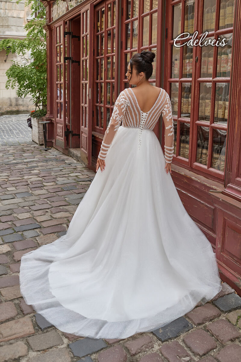 The wedding dress is made by hand for the customer. The wedding dress is a made-to-order product with no exchange or return rights. To find out the delivery time, contact our customer service on WhatsApp or call +358 44 0101 671.